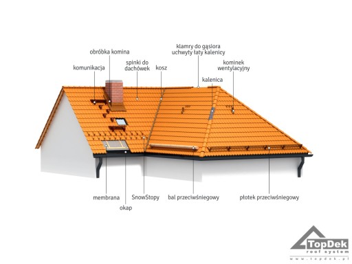 Materiał: stal ocynkowana ogniowo w wersji nielakierowanej lub malowanej proszkowo pod kolor danego pokrycia dachowego.