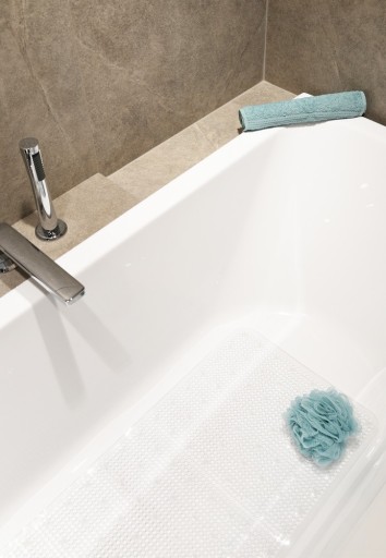 Mata idealnie sprawdzi się w długiej wannie, jedna strona maty posiada specjalne wycięcie pod odpływ