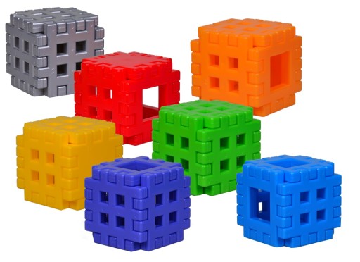 W zestawie 144 sztuki klocków wafli zapakowanych w folię termokurczliwą.