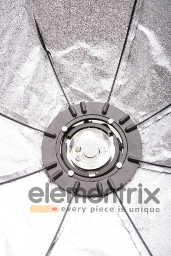 Równomiernie rozprowadzane światła zapewnia srebrzysta powierzchnia odblaskowa oraz zewnętrzny i wewnętrzny dyfuzor. Softbox tego typu można dowolnie obracać o 360°.