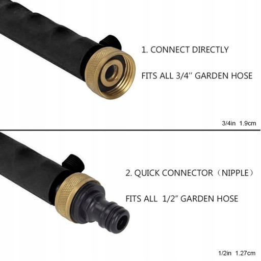 1. Po prostu podłącz nasz pistolet na wodę bezpośrednio do standardowego węża ogrodowego 3/4 cala.