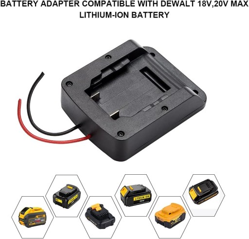 Adapter akumulatora jest kompatybilny z wysuwanym akumulatorem litowo-jonowym Dewalt 18 V Max. Wsuń ten adapter na akumulator, można go łatwo podłączyć do urządzeń.