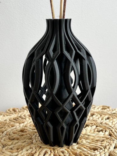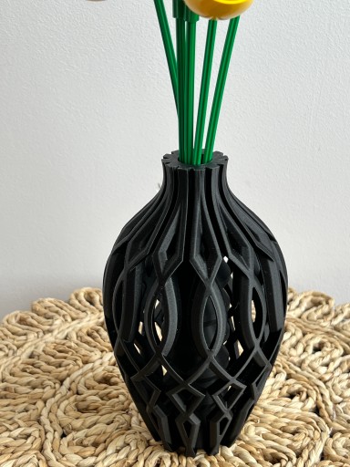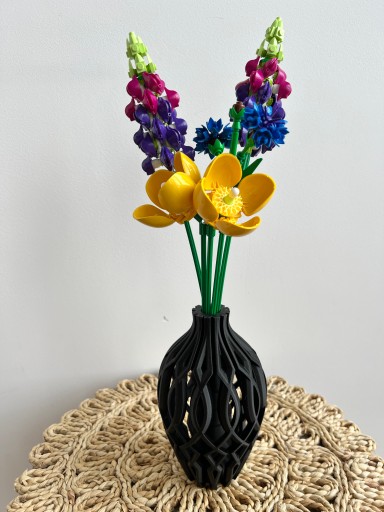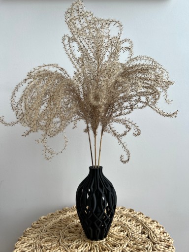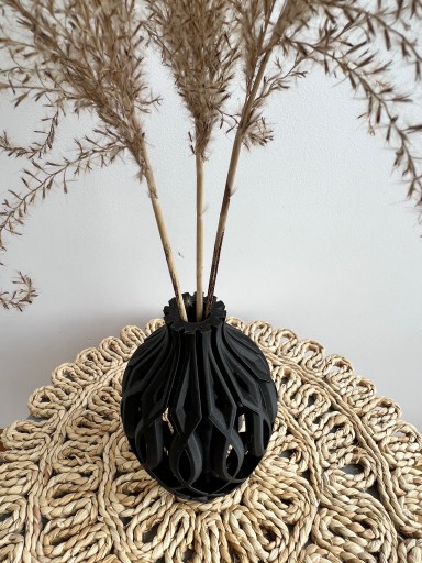 Ten wyjątkowy wazon został wydrukowany w technologii druku 3D. Ma lekką i bardzo ciekawą konstrukcję, a dzięki swojemu unikalnemu kształtowi idealnie prezentuje się sam jak i z kwiatami. Pięknie pasuje zarówno do kwiatów sztucznych jak i modnych suszonych traw. Jest też idealny do kwiatów LEGO, które zyskują ostatnio na popularności. Ale nawet pusty wygląda bardzo efektownie, stanowi designerski element dekoracyjny i będzie nietuzinkową ozdobą twojego wnętrza.
