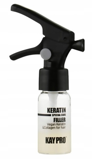 - Płynna konsystencja, bogata w roślinną keratynę i kolagen wypełniający zniszczone partie włosów, dodając im siły i mocy.