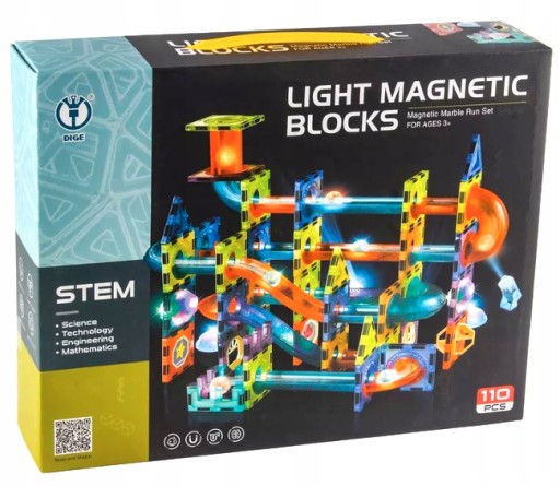 Duże Klocki Magnetyczne Konstrukcyjne Świecący Tor Kulkowy 110 el