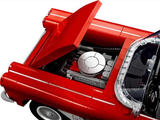 Replika zabytkowego modelu Chevrolet Corvette C1 z 1961 roku w wersji z klocków LEGO® ma całe mnóstwo oryginalnych detali wzorowanych na tym ponadczasowym samochodzie: eleganckie krzywizny klasycznej sylwetki i stylowe wnętrze.