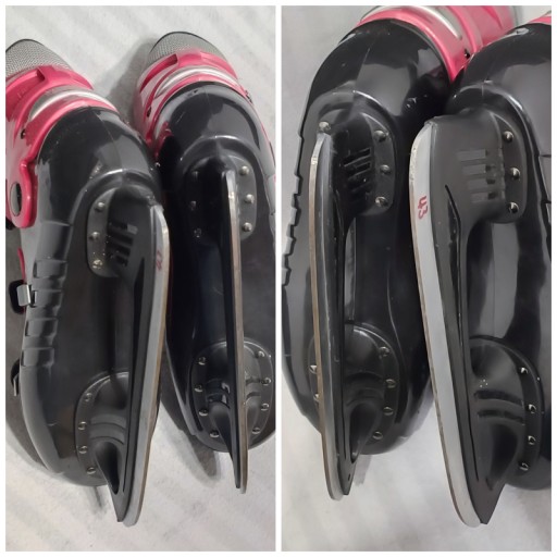 W każdym bucie ( skorupa - zdjęcia ) od strony wewnętrznej w miejscu jednego z nitów jest założona śruba ze stali nierdzewnej z płaskim, szerokim łbem od środka. Śruby posiadają podkładki sprężynujące ( również wykonane ze stali nierdzewnej ) zabezpieczające przed samo wykręceniem.