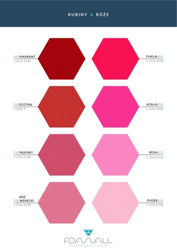 Uwaga ! Kolor wzornika zależy od indywidualnych cech monitora i jego kalibracji. Kolor wzornika może nieznacznie różnic się odcieniem w świetle rzeczywistym.