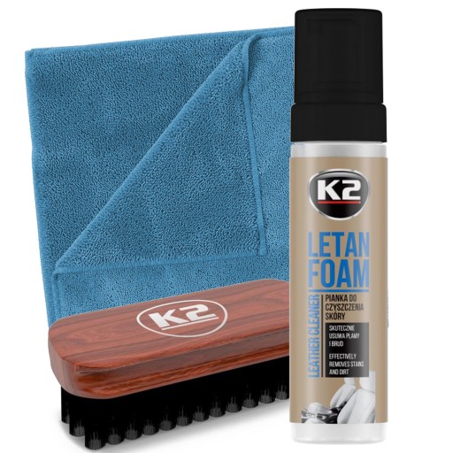 K2 LETAN FOAM to wysoce skuteczny środek do czyszczenia skórzanej tapicerki w samochodzie. Oferowany w formie aktywnej pianki, która w użyciu ze szczoteczką zapewnia wysoką siłę czyszczenia. Doskonale sprawdza się zarówno w przypadku starszych tapicerek, również tych o dużym stopniu zabrudzenia. Z łatwością usuwa wszelkie zabrudzenia, w tym stare i uporczywe plamy.
