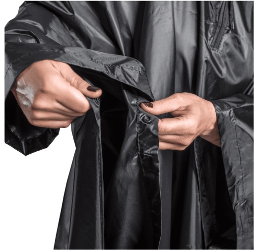 - ✅ Zatrzaski do spięcia rękawów -Napy pozwolą na spięcie peleryny tworząc rękawy, które zapobiegają podwiewaniu.