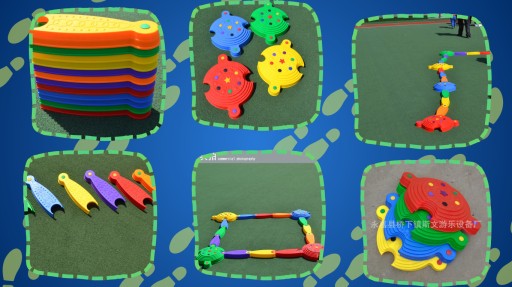Сенсорная тропа, река с островами, красочное бревно Монтессори