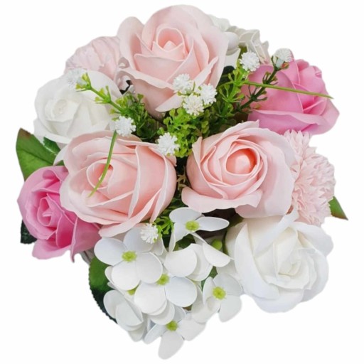 Bukiet z różami i innymi kwiatami mydlanymi to idealny prezent dla bliskiej osoby lub piękna ozdoba dla Twojego domu lub biura.