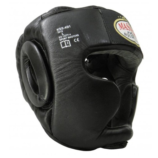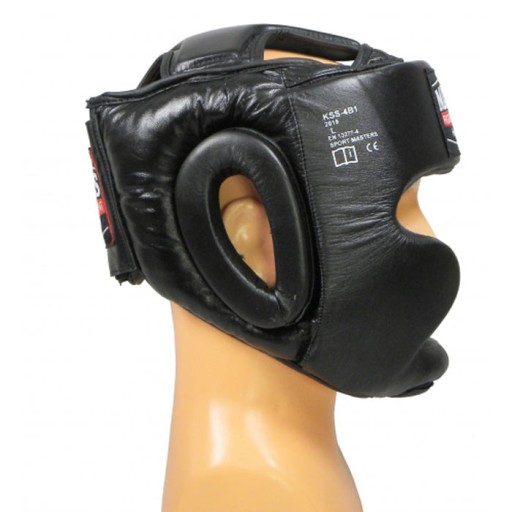 Kask sparingowy KSS-4B1 wykonany w całości z wysokiej jakości skóry bydlęcej. W pełni zabudowany z ochroną kości policzkowych, brody i górnej cześci głowy.