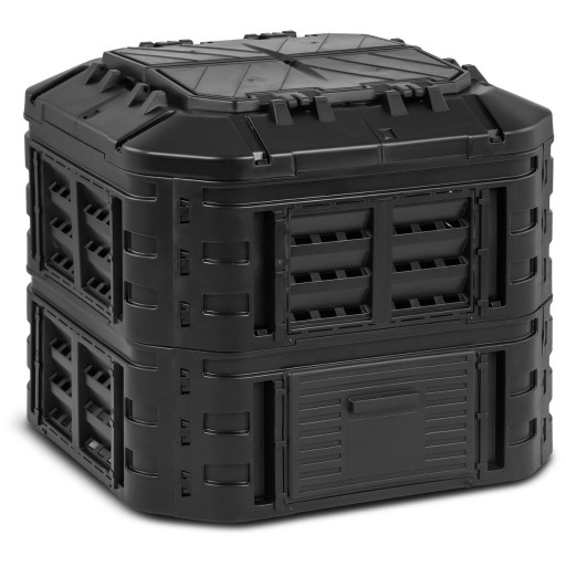 Kompostownik w formie dużego pojemnika z trwałego polipropylenu zapewnia warunki, w których odpady ogrodowe mogą skutecznie się rozkładać. Konstrukcja o pojemności 600 l jest łatwa w montażu dzięki modułowej konstrukcji i zawiasom. Dla większej stabilności może być przymocowana do podłoża za pomocą haków. Cenny kompost zabezpiecza pokrywa, którą można bezpiecznie zamknąć za pomocą kłódki (brak w zestawie).