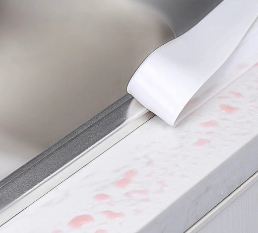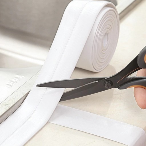 Silikonowa taśma wykończeniowa, uszczelniająca do brodzików, wanien, umywalek, podłóg itp. Taśma jest wodoodporna oraz odporna na pleśń.