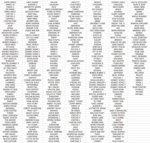 Konsola zawiera 400 zainstalowanych gier (lub wariantów rozpoczęcia danej gry), w tym gry retro takie jak m.in.: