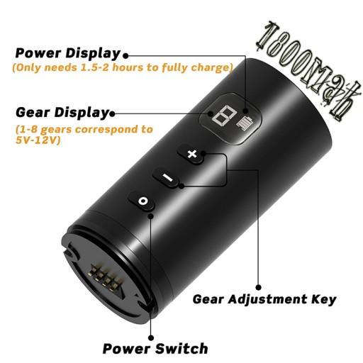 About the battery: The battery capacity is 1950mAh, built-in 3x 650mAh lithium battery. Support long-term tattoo work, stable output. The 8V output voltage can work for 6-8 hours, and a full charge only takes 1.5-2 hours . More importantly, the battery can be replaced at any time.