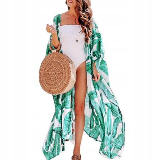 Stylowy do noszenia jako bikini cover up na plaży lub kimono kardigan na co dzień.
