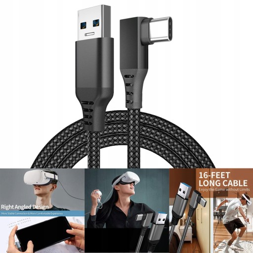 Соединительный кабель 90 градусов для Quest 2 VR, черный, 6 м, 20 футов