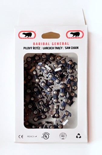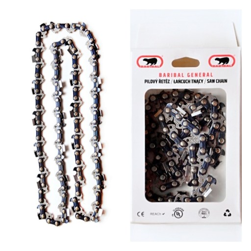 Zmodernizowany łańcuch Baribal General do pił spalinowych i elektrycznych. Ten łańcuch ma skok łańcucha 3/8 cala, szerokość zęba prowadzącego 1,1 mm.