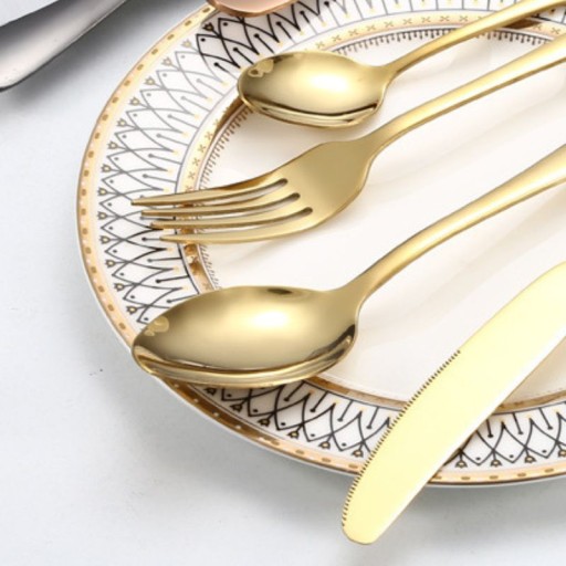 Nie czekaj i spraw, aby Twoje posiłki stały się jeszcze bardziej wyjątkowe dzięki naszemu złotemu zestawowi sztućców. Idealny jako prezent lub jako uzupełnienie Twojej domowej kolekcji.