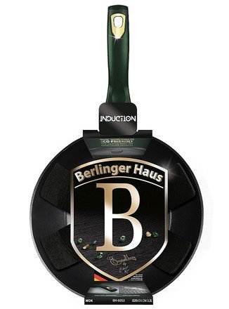 Patelnia granitowa / WOK O28cm BERLINGER HAUS z serii METALLIC LINE - EMERALD.Garnki i akcesoria z serii METALLIC firmy BERLINGER HAUS wykonane są z wysokiej klasy kutego aluminium pokrytego wewnątrz potrójną powłoką granitową (marble) o bardzo wysokim współczynniku twardości. Powłoka zewnętrzna występuje w kilku wersjach kolorystycznych o charakterystycznym metalicznym połysku. Te atrakcyjne i modne naczynia wyposażone są standardowo w uchwyty typu SOFT TOUCH (silikon handle). Przystosowane do wszystkich rodzajów kuchenek: gazowa, elektryczna, ceramiczna, halogenowa, indukcyjna. System TURBO INDUCTION (bardzo szybko nagrzewają się) pozwala zaoszczędzić nawet 35% energii.