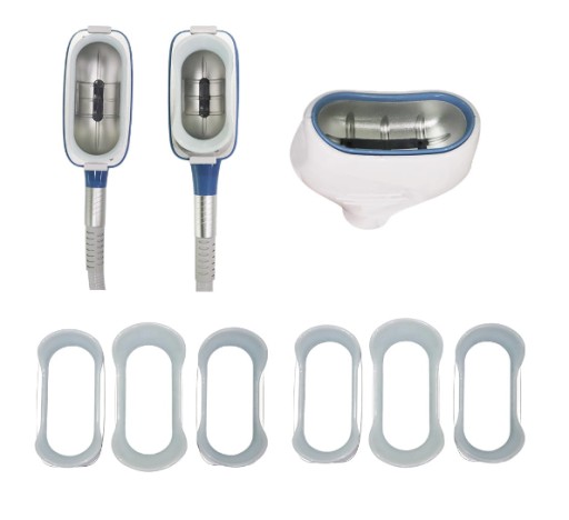Cos 360° 3D to innowacyjne głowice chłodzące całą swoją powierzchnią. Obszar poddawany zabiegowi jest chłodzony we wszystkich wymiarach.W zestawie są 3 rozmiary głowic krio- duże, średnie i mała + wymienne silikonowe nakładki.