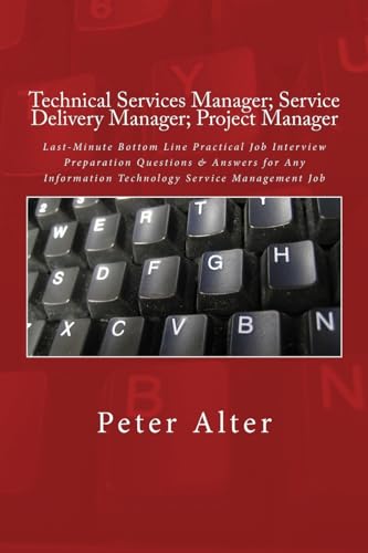 Technical Services Manager; Service Delivery Manager; Project Manager: Last-Minute Bottom Line Practical Job Interview Preparation Questions & Answers for Any Information Technology Service Management JobIt has precisely articulated bottom line practical real interview questions with answers to be successful at any Technical Services Manager Job interview. It will help you to convey powerful and useful information to the employer successfully. It will provide Technical Services Manager professionals all the theoretical and practical aspects of Technical Services knowledge so that they can Architect, implement, operate, manage, and integrate enterprise IT systems and infrastructure.Practicing with this interview questions and answers in the mirror will help with your replies to questions and pass with flying colors. It also covers non-technical, HR and Personnel questions in brief. Practicing with this interview questions and answers in the mirror will help with your replies to questions and pass with flying colors.