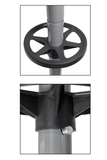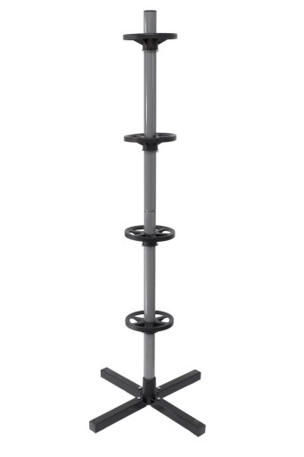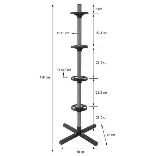 Stojak stabilnie osadzony na czteroramiennej podstawie 45 cm x 45 cm. Jest lekki, poręczny i łatwy w przemieszczaniu.