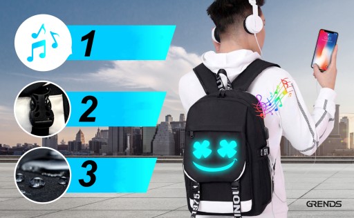 WODOODPORNY I ŚWIECĄCY W CIEMNOŚCI NA NIEBIESKO PLECAK MARSHMELLO Z PORTEM USB