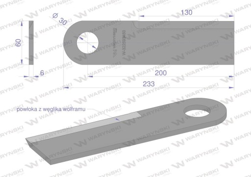 Nóż przystawki do kukurydzy napawany 233x60x6 otwór 30mm zastosowanie New Holland Laverda WARYŃSKI