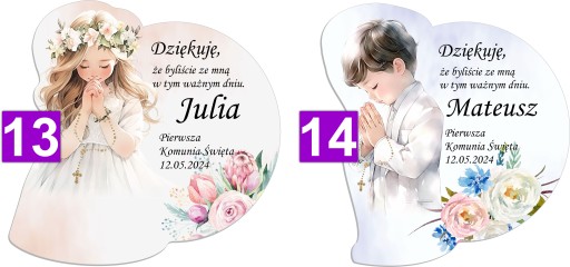 Podziękowanie dla gości Komunia dzieci magnes - komplet 12 szt.