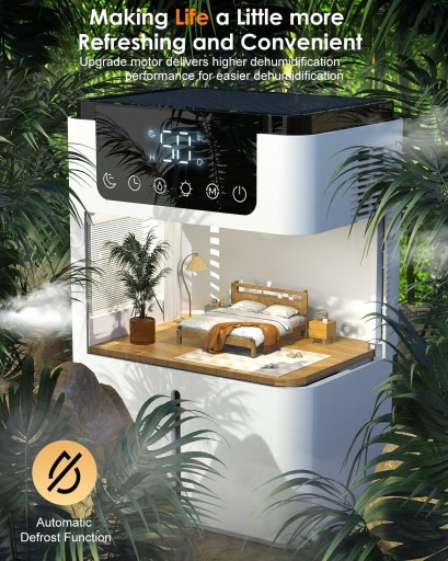 - Inteligentny panel dotykowy, łatwy w obsłudze – podwójne przypomnienie z dużym cyfrowym wyświetlaczem i lampkami, które wyraźnie wskazują wilgotność powietrza w pomieszczeniu. Obsługa przycisków dotykowych, zmiana trybu pracy za pomocą jednego przycisku. Wyposażony w dwurdzeniowy kompresor zapewnia większą wydajność osuszania. Osuszacz powietrza jest wyposażony w dwa poziomy osuszania (L1/L2), które można dostosować w zależności od potrzeb, dzięki czemu osuszanie jest bardziej inteligentne.