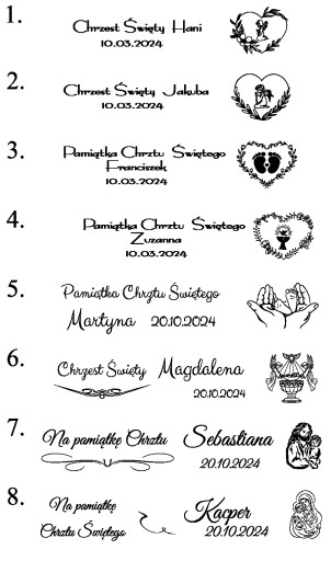 - Imię dziecka, ewentualnie imiona - data chrztu.