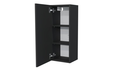 Korpus i fronty szafki wykonane z wiórowej płyty laminowanej matowej w CZARNYM kolorze o grubości 18mm.