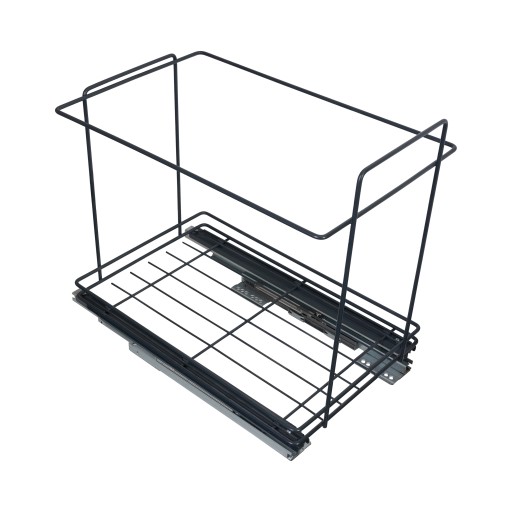 Zestaw składa się z dwóch koszy z pokrywami, stalowego stelaża, wysokiej jakości prowadnic z funkcją pełnego wysuwu i cichego domyku oraz kompletu mocowań.