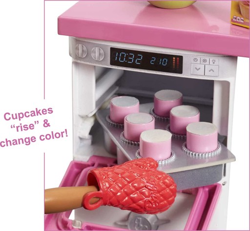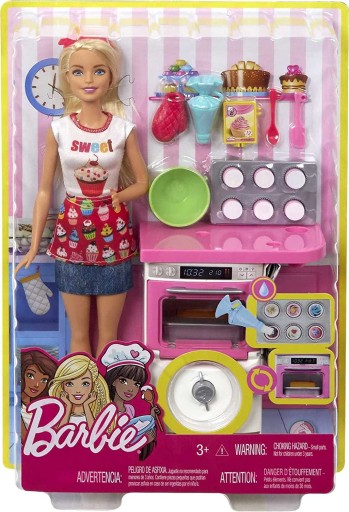 Zestaw dla małej miłośniczki pieczenia słodkich wypieków oraz Barbie, z którym będzie mogła tworzyć wiele wspaniałych scenariuszy zabawy w kuchni!