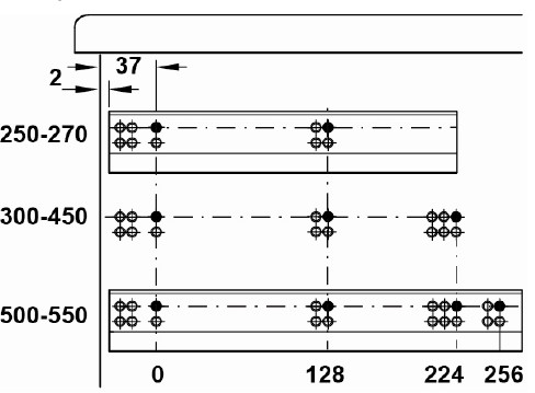 Tutaj kupujesz parę prowadnic Favorit L=550 mm, na PIN , wysuw pełny z hamulcem