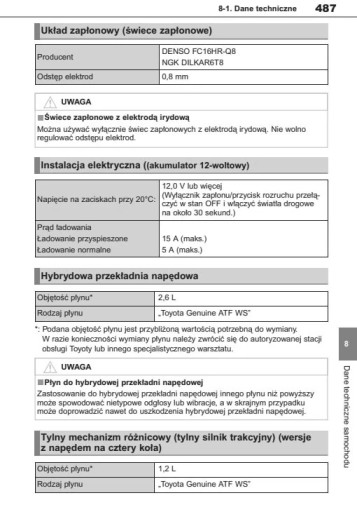Instrukcja obsługi Toyoty zawiera wszystkie wersje wyposażenia oraz przydatne informacje jak sprawnie i bezpiecznie użytkować pojazd np.-wskaźniki, lampki kontrolne, otwieranie i zamykanie-oświetlenie i widoczność, fotele, schowki, ogrzewanie, wentylacja, klimatyzacja-jazda, wskazówki eksploatacyjne, konserwacja pojazdu-poziomy płynów, sprawdzanie i uzupełnianie, czynności awaryjne, wymiana kół, bezpieczniki, wymiana żarówek-dane techniczne... oraz wiele wiele innych rzeczy, które dają poczucie bezpieczeństwa oraz komfortu podróżującym. Polskie prawo nakłada na sprzedawcę obowiązek dołączania instrukcji obsługi auta w języku polskim do . Instrukcja obsługi auta jest nowa i w języku polskim.