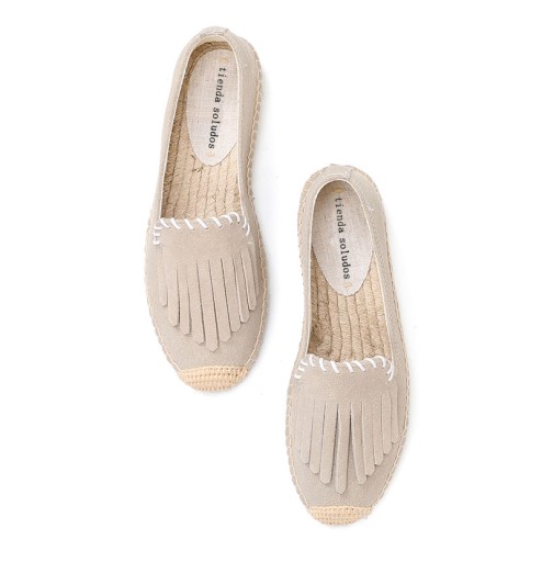 ЭСПАДРИЛЕ ТУФЛИ С БАХОЙ, НАТУРАЛЬНАЯ КОЖА, БЕЖЕВЫЙ