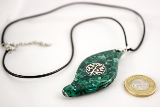 Naszyjnik Orgonitowy o ciekawym kształcie z motywem Drzewa Życia to czysta energia zdrowia, która przynosi spokój, dobry i głęboki sen, utrzymuje dobre zdrowie, a także ma przepiękny wygląd, piękną zieloną barwę kamieni Malachitu.