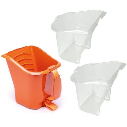 - Wyprofilowana tarka na jednej ściance ułatwia rozprowadzenie farby na małym wałku.