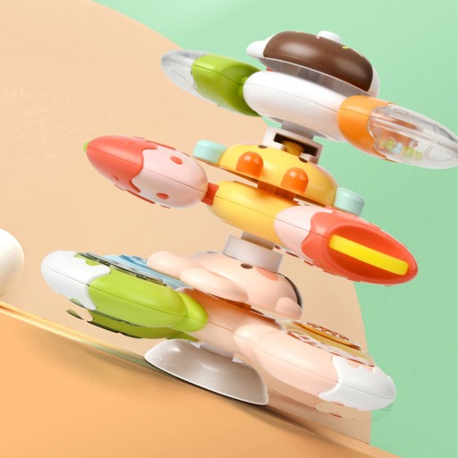 Spinery można przyczepić zarówno do szybu w czasie podróży oraz do wanny w czasie kąpieli (zabawkę można moczyć). Łożyska spinerów gwarantują długotrwały obrót. Zabawki posiadają gumowe elementy do przyciskania co rozwinie zmysły dziecka oraz działa relaksująco. Zabawa ćwiczy zwinność roczek u dziecka oraz poprawia koordynację ręka-oko.