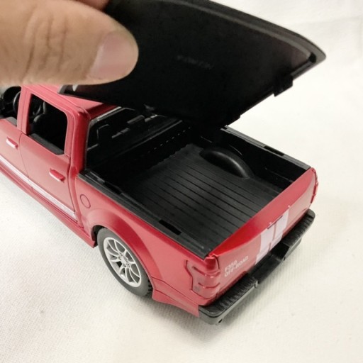 Auto terenowy Ford F-350, pickup samochód przeznaczony do jazdy terenowej. Samochód został bardzo starannie i estetycznie wykonany z dbałością o najmniejsze szczegóły co zapewne zachwyci każdego małego kierowcę. Autko posiada efekty dźwiękowe, świetlne, otwierane drzwi, maskę i bagażnik. Samochód jeździ poprzez cofnięcie zabawki na gładkiej powierzchni do tyłu za pomocą mechanizmu Friction power, czyli rozpędzanie poprzez poruszenie zabawki na gładkiej powierzchni.