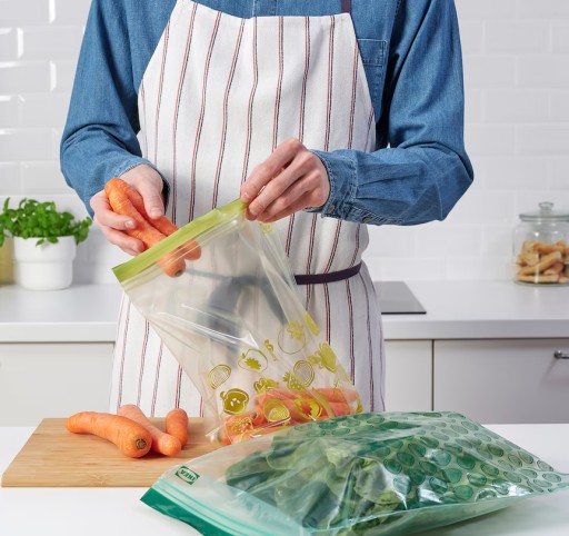 Można zamykać i otwierać bez końca, dzięki czemu torebki nadają się do wielokrotnego użytku.Woreczki ISTAD mają podwójne zamknięcie, które dłużej utrzymuje zawartość świeżą - a nawet pozwala szczelnie przechowywać płyny.