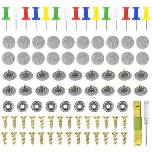 - ✅ Zestaw zawiera 70 szarych nitów naprawczych, 70 kolorowych pinezek, 1 śrubokręt, 1 centymetr.