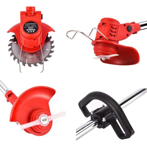 ⭐Kosiarka akumulatorowa wyposażona jest w trzy głowice tnące, plastikowy nóż nadaje się do koszenia miękkiej trawy. Metalowe ostrze ze stali nierdzewnej nadaje się do koszenia trawnika, chwastów i małych krzewów. Piła tarczowa ze stali manganowej nadaje się do koszenia grubszej trawy, krzewów i gałęzi. Ostrze jest ostre i mocne, co pozwala na szybkie cięcia. Kąt głowicy można regulować w zakresie 90 stopni, co pozwala użytkownikom dostosować kąt cięcia i ciąć w ciasnych miejscach, np. pod stołem warsztatowym.
