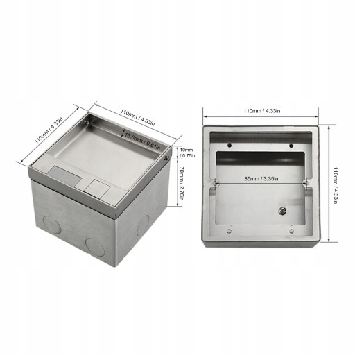 1 x Ukryte gniazdo do wbudowania w podłogę 1 x Skrzynka przyłączeniowa