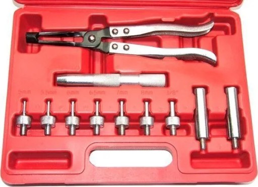 Zestaw do zdejmowania i zakładania uszczelek zaworowych w silinikach wielozaworowych.