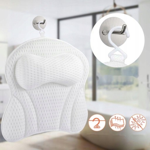 Poduszka do wanny jest ergonomicznie zaprojektowana, wykonana z unikalnej technologii 4D air mesh, łatwa do czyszczenia, oddychająca i przepuszczająca wilgoć, wielowarstwowe włókna umożliwiają przepływ powietrza i wody przez te otwory i szybko wysychają, zapobiegając poduszki od wewnątrz i otaczających formacji nieprzyjemnych zapachów, pleśni lub rozwoju bakterii.